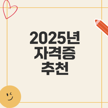 2025년 유망 자격증 추천 리스트 2025년, 변화하는 산업에 맞춰 유망 자격증이 주목받고 있습니다. 취업 경쟁력과 자기 계발을 위해 자격증을 준비하는 것이 중요해지고 있습니다. ≡ 목차 IT 분야 유망 자격증 .. 카테고리 없음 2025.05.13